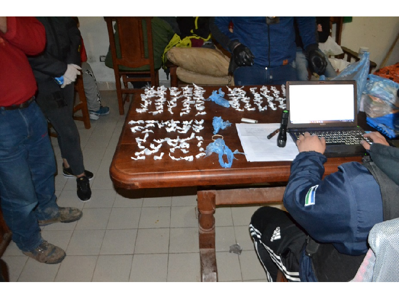 Los mismos dieron como resultado la incautación de 1000 dosis de cocaína fraccionada lista para su comercialización y 4 lotes y medio de cocaína prensada de máxima pureza, llegando a un total de 5 kilos de clorhidrato de cocaína.